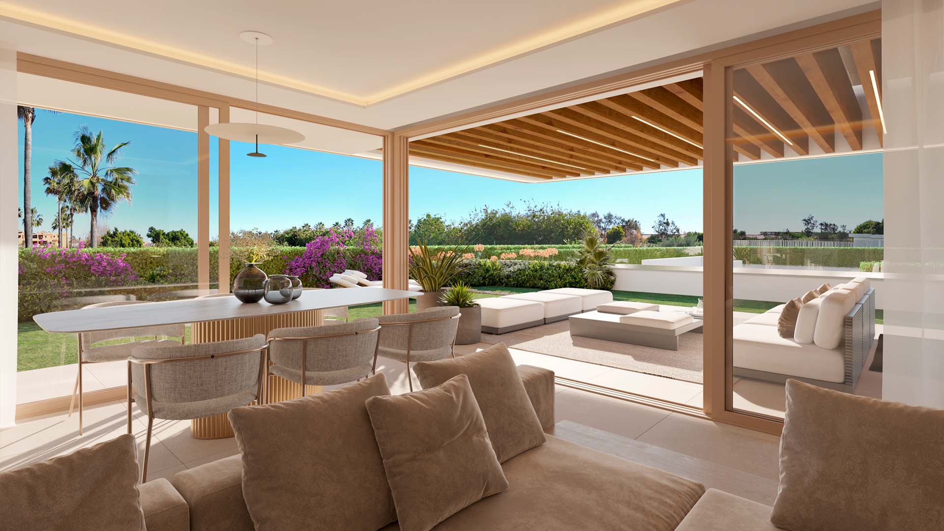 Cada tipología ha sido diseñada con una distribución inteligente, cuidando la conexión entre estancias y potenciando la relación con terrazas, jardines o soláriums privados. Ya sea para quienes valoran el contacto directo con el exterior, para quienes priorizan vistas abiertas y luz natural, o para quienes buscan la máxima exclusividad, el proyecto ofrece una respuesta clara y coherente.